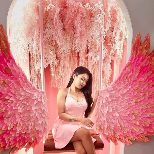 හරියට වයස 20ක 22ක කෙල්ලෙක් වගේ. දනිහෙන් උඩට තිබුන ශෝට් එකටයි ටිකක් ලොකුවට ඇදන් හිටිය ටී